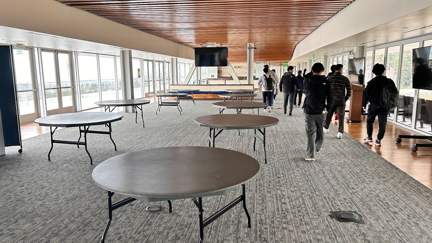 まず最初に見学させていただいたのは、アメリカンフットボール用のスタジアムです。こちらのスタジアムは7万人前後収容可能ということで、日本でいうと日産スタジアムが7万2千人収容なので、ほぼ同じサイズのスタジアムが大学にあるということになります。また前日に見学したLevi‘s stadiumは何種類ものラウンジがありましたが、Calにはボックスシートなどはなく、ラウンジ内も試合が見やすいような開けたスペースとなっており、プロスポーツとの違いを感じました。そういった比較をプロの施設と大学の施設両方見学出来たことは今回のSBCの良かった点だと思います。