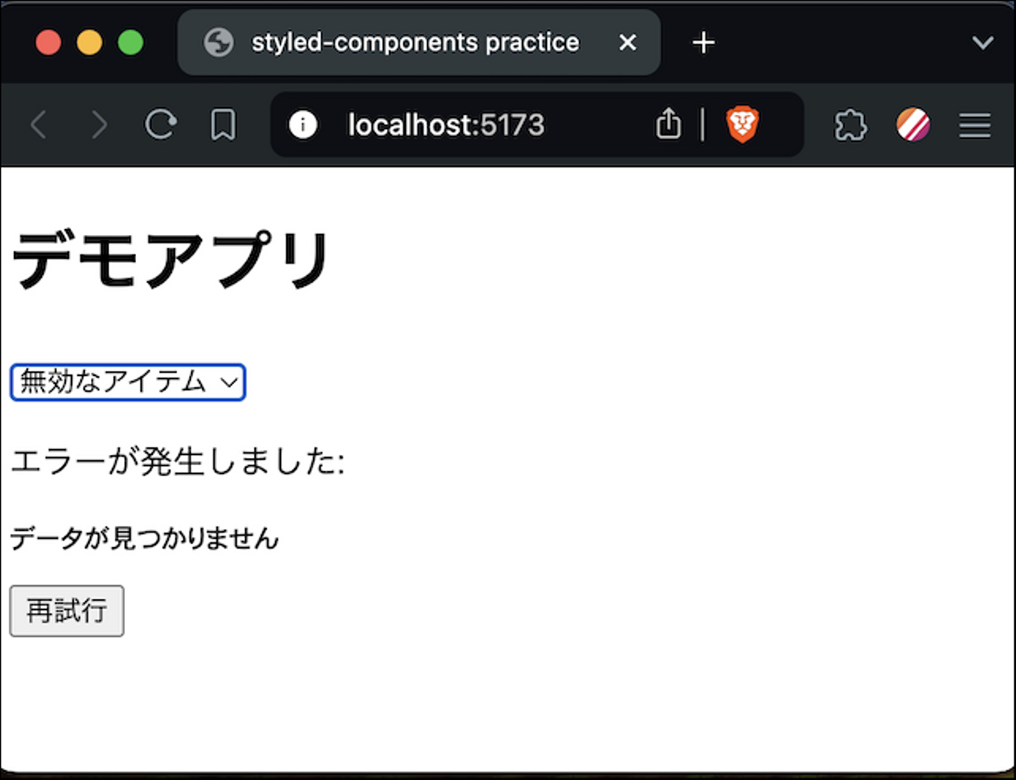 今回は再試行ボタンを押すことでエラーリセット処理を実行するようにしました。
