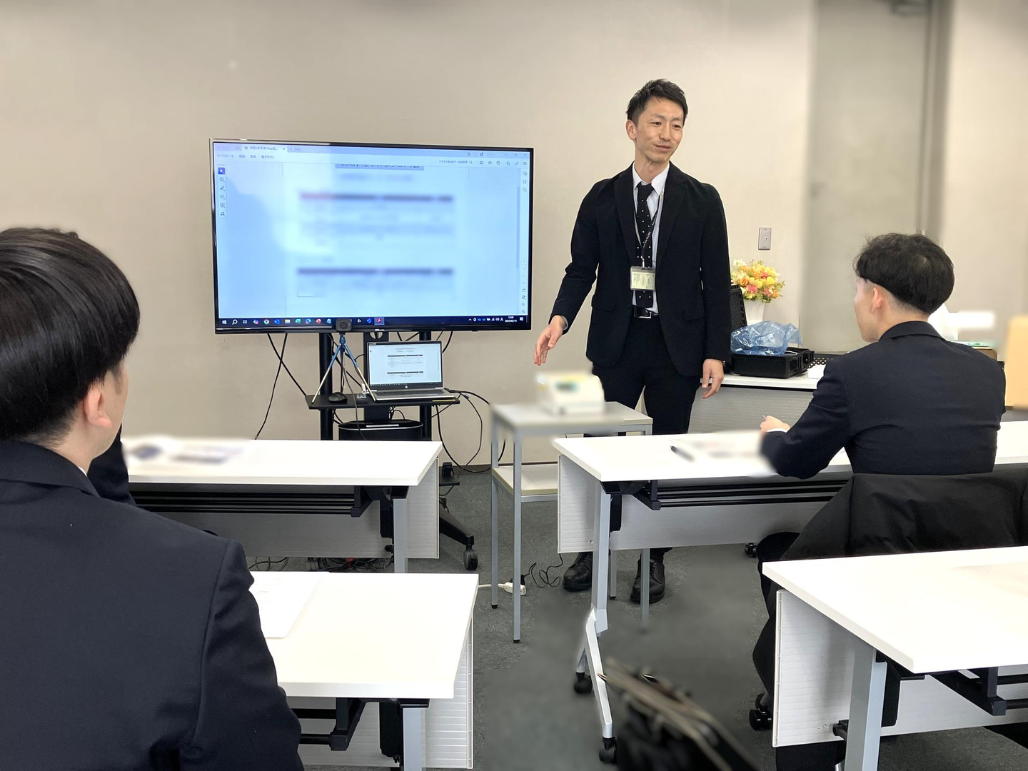 午前の部は医療機器ディーラーの事業説明と先輩社員との交流、質疑応答の時間となりました。 北海道内の大学から4名の学生に集まっていただきましたが、実は当日の登壇者である社員も同じ大学出身。思わぬご縁もありつつ「支店ごとの業務の違い」や「入社前にやっておくべきこと」「どんなキャリアを考えているのか」といった実際に働くことを前提にした質問も飛び出し、序盤から盛り上がりました。