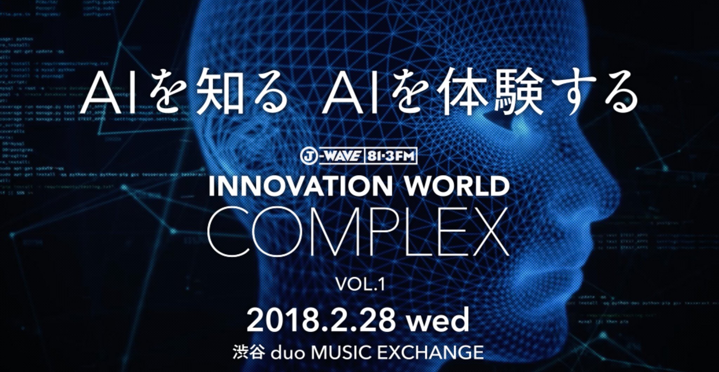 2/28(水)に、J-WAVE「INNOVATION WORLD」発のテクノロジーカンファレンスイベント「INNOVATION WORLD COMPLEX」に、弊社代表上路が登壇しました。