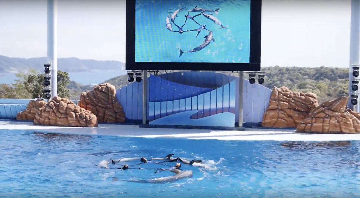 私はこんなに出演者の多いショーは初めてみました!イルカもトレーナーも何人いるの!?ってくらい多くて、広いプールのあっちこっちでジャンプするイルカたちを目で追うのが大変なくらいのパノラマショーでした。