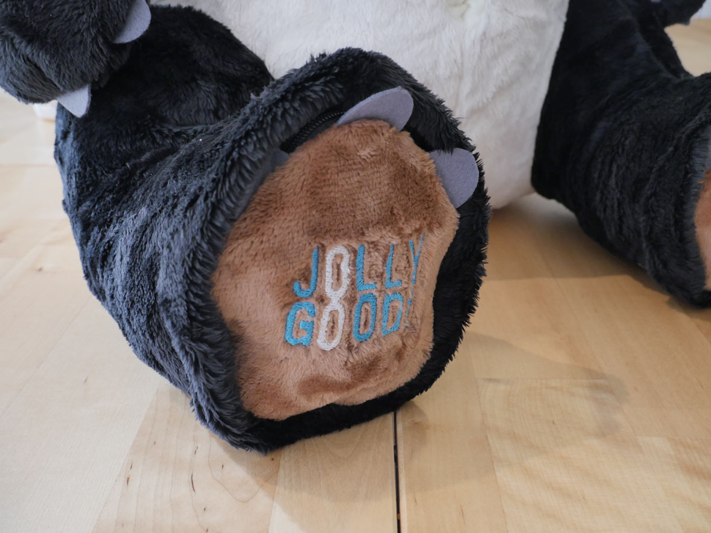 なんとパンダのぬいぐるみの足に「JOLLY GOOD」のロゴが!