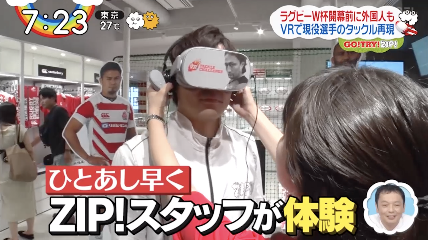 そして「VR TACKLE CHALLENGE!」は、日本テレビ朝の情報番組「ZIP!」でも取り上げていただきました!