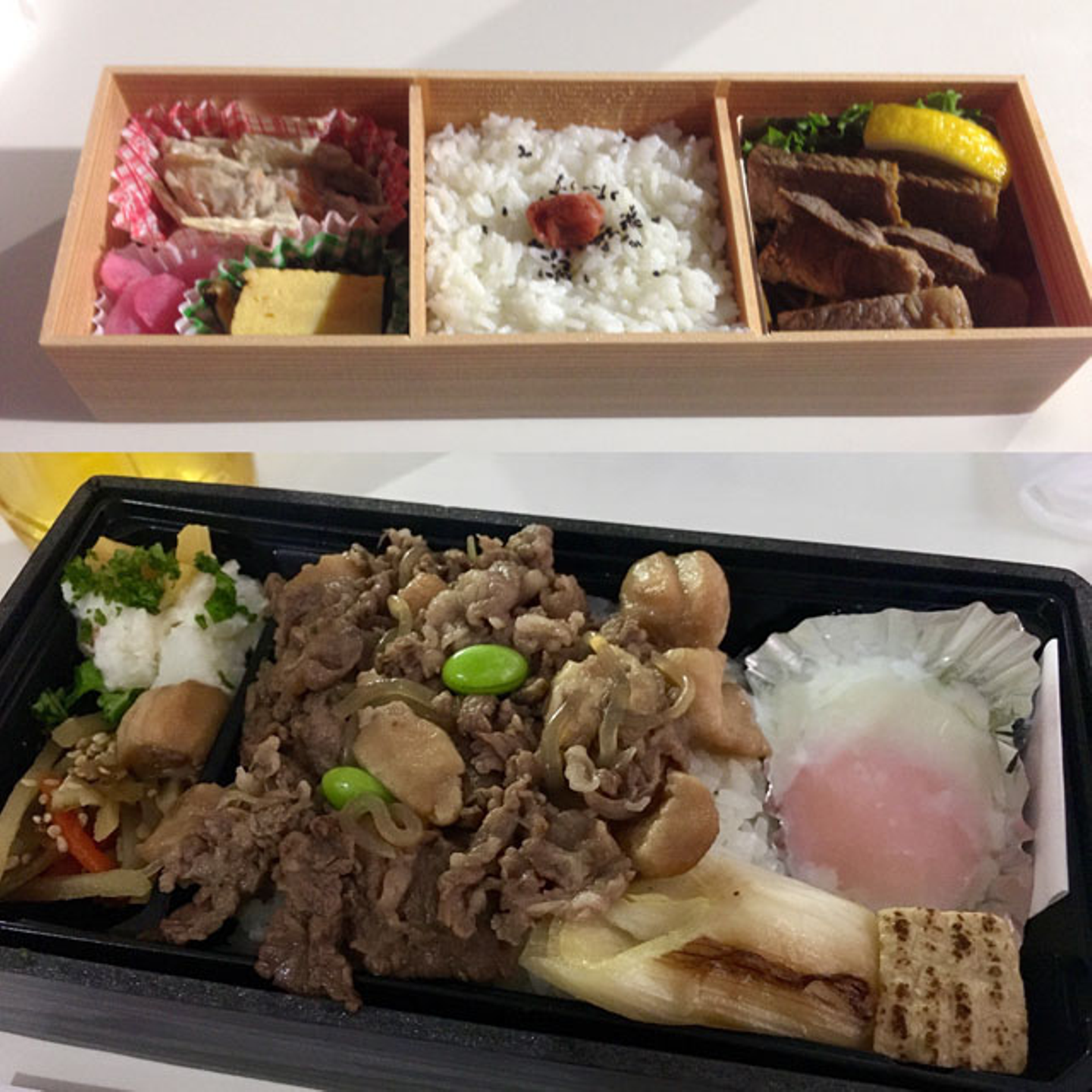 早々になくなってしまっていたステーキ弁当と、私が少し食べてしまったすき焼き弁当です。