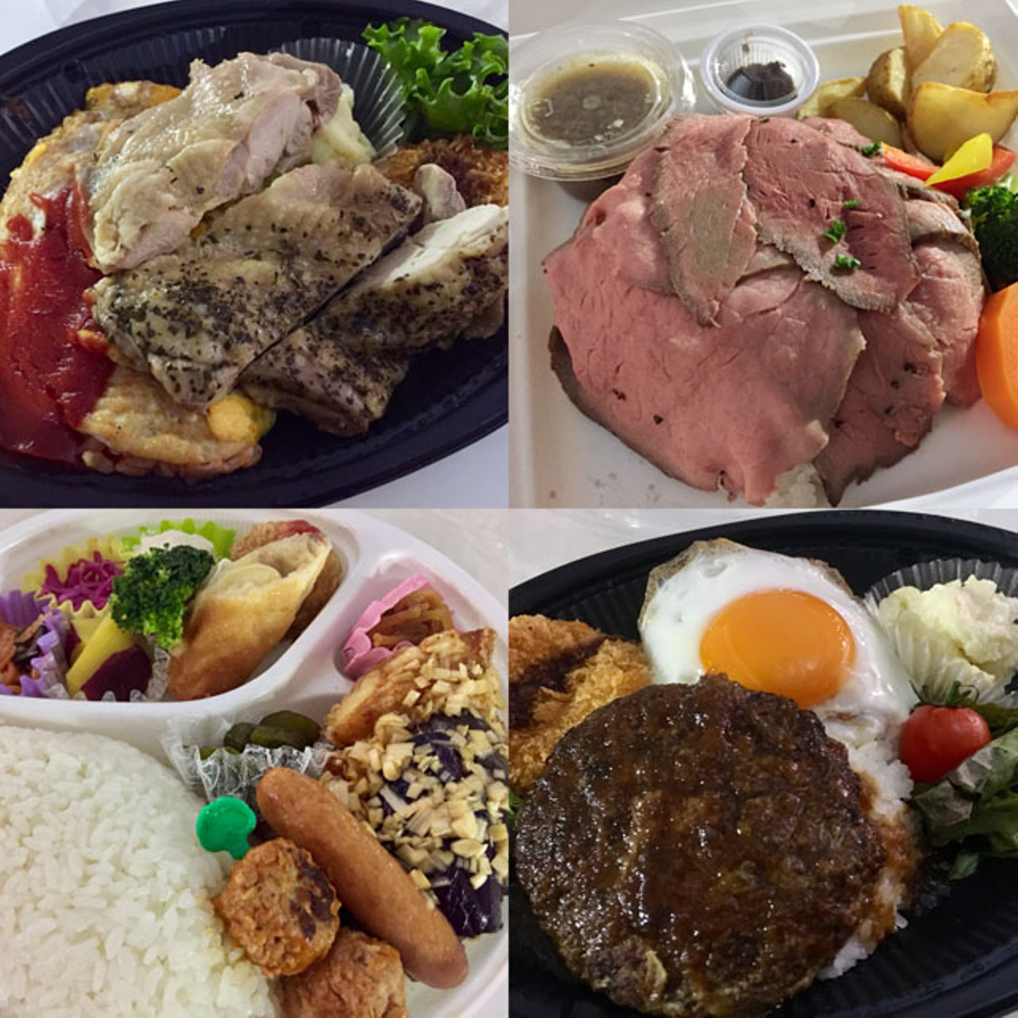 肉続きで野菜が食べたかった私は、3日目は右下のゴーヤチャンプル弁当にしました。