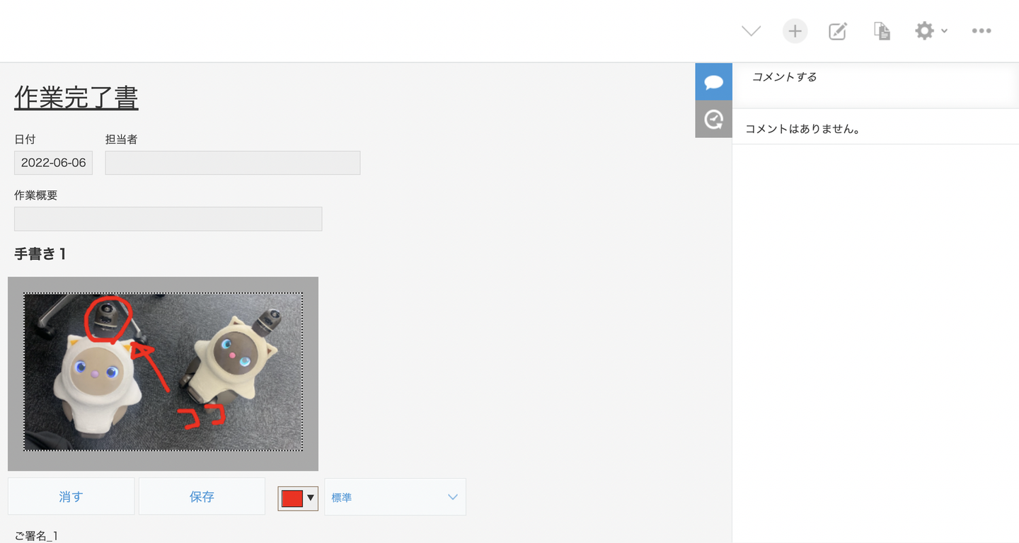 「手書き2」プラグインは、kintone上で署名ができたり、画像に情報を書き込むことができるというプラグインになります。お客様の直筆サインをもらって画像化したい時や、画像の確認してほしい箇所を伝えるのにとても便利です。人気があるのも頷けますね。