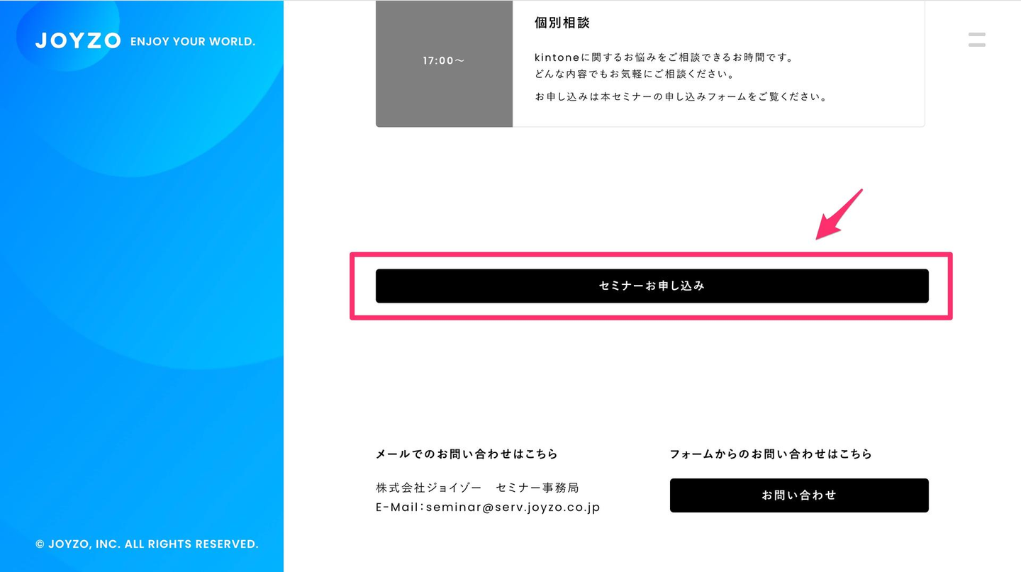 セミナーページの下の方まで見ると、このようなセミナーへのお申し込みフォームがありますよね?