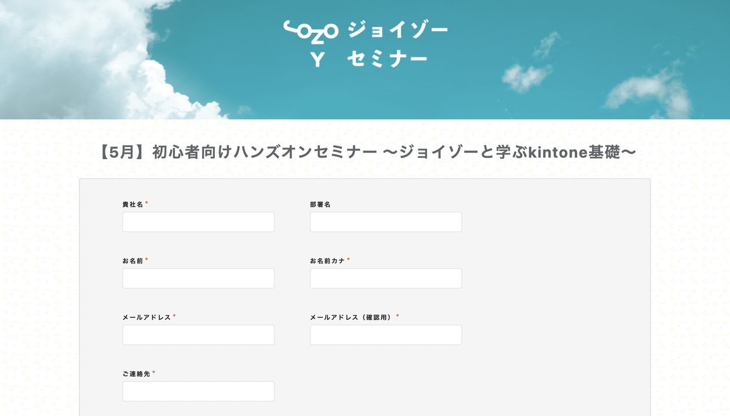 ジョイゾーでは情報管理のほとんどをkintoneで行っているため、お申し込み情報もkintoneに保存します。