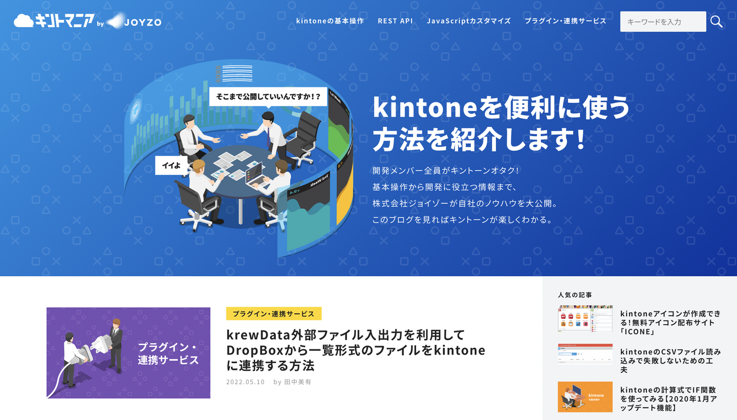 次にキントマニアブログを書く際の工夫する点を教えていただきました。キントマニアブログとは、ジョイゾーメンバーがkintoneを便利に使う方法について紹介するというブログです。菊地さんは主にkintoneのアップデート内容についてのブログを書いているので、5月のアップデート内容のブログから抜粋して説明していただきました。これが実際のブログの一部です。