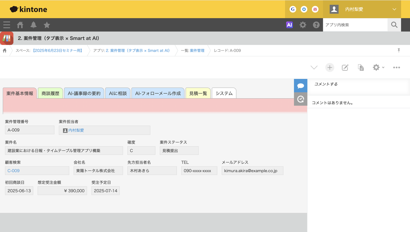 スライド資料に加えて、kintoneのデモ環境も並行して作成していきました。