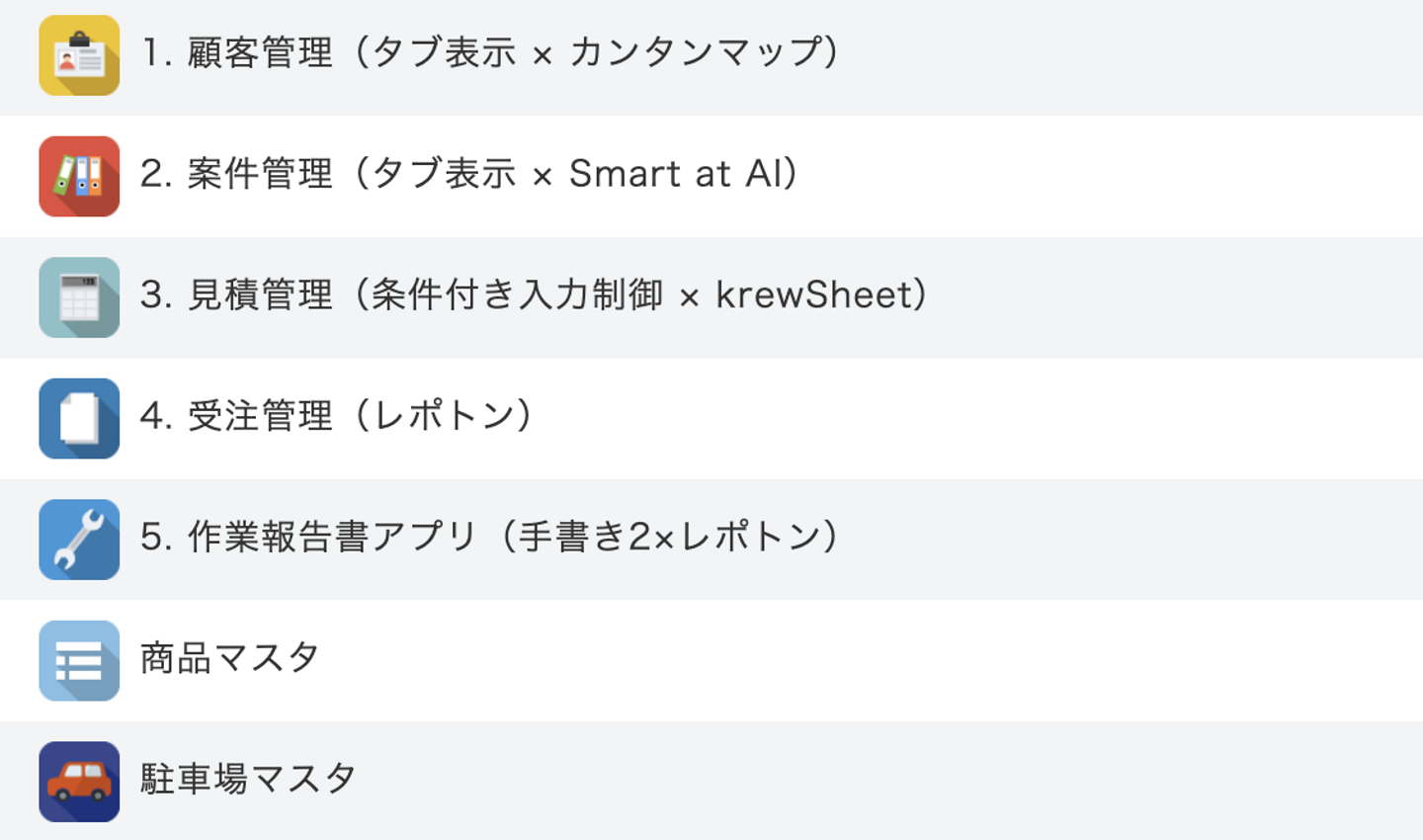 しかし、アプリ作成の土台においては、kintoneアプリストアにあるアプリパックや、社内で使われている同様のアプリの構成を参考にし、できるだけ実務に即したレベルのアプリに仕上げることを心がけました。