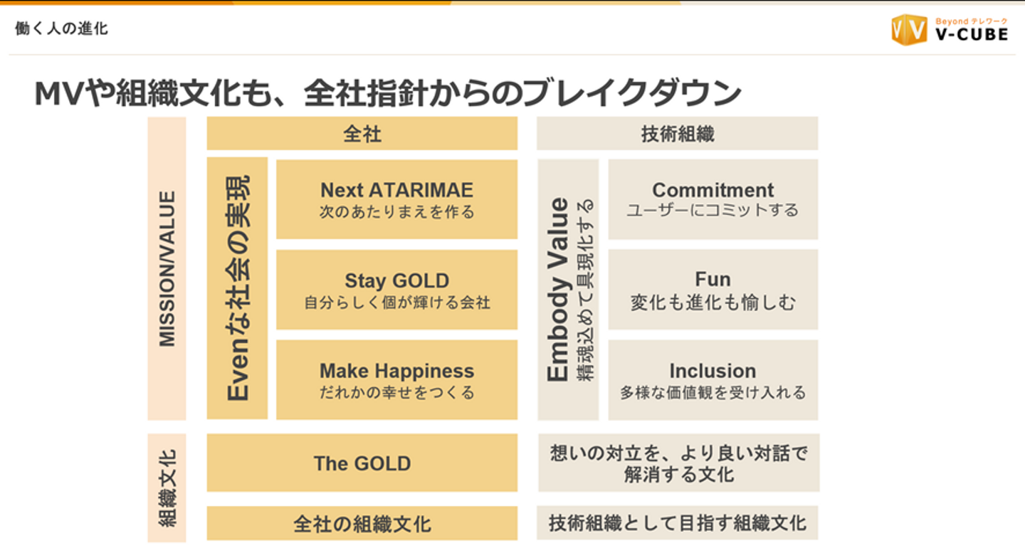 ―――お話を伺って、MISSIONとの関係性やそれぞれのVALUEの結びつきも理解することが出来ました。Inclusionは聞いたことはあっても正直、イメージが出来ていなかったのでブイキューブで大事にしている対話とも関連が見えて良かったです。Commitment、Fun、Inclutionに重み付けや順序はありますか?