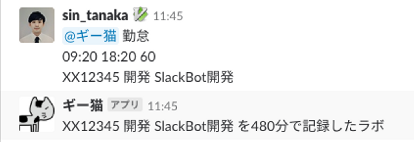 インプットはテキストベースですが、やはり出退勤同様、Slackは絶対に立ち上げているアプリケーションなので、ブラウザに遷移しマウスでポチポチ入力するよりもはるかに楽です。
