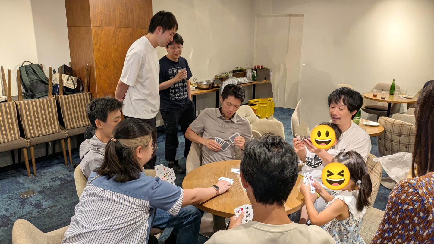 今回は「ババ抜き大会」ということで、メンバーのお子さんの参加もあり、いつも以上に賑やかな会となりました。お子さんが参加する懇親会は当社にとってもかなりのレアケースなのですが、子ども好きなメンバーも多く、会場のあちこちから楽しそうな笑い声が響いていました。参加したお子さんたちにも概ね好評だったようです。