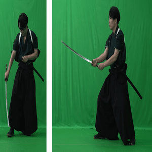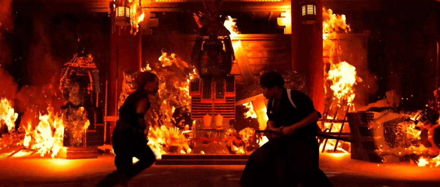小道具に使用している武器は、照明の光を反射しやすく、In-Camra VFXならではの光と影の見え方を活かしています。グリーンバック撮影では照明をフラットにしがちですが、刀や苦無の輝きと陰影のコントラストをより自然に表現できています。