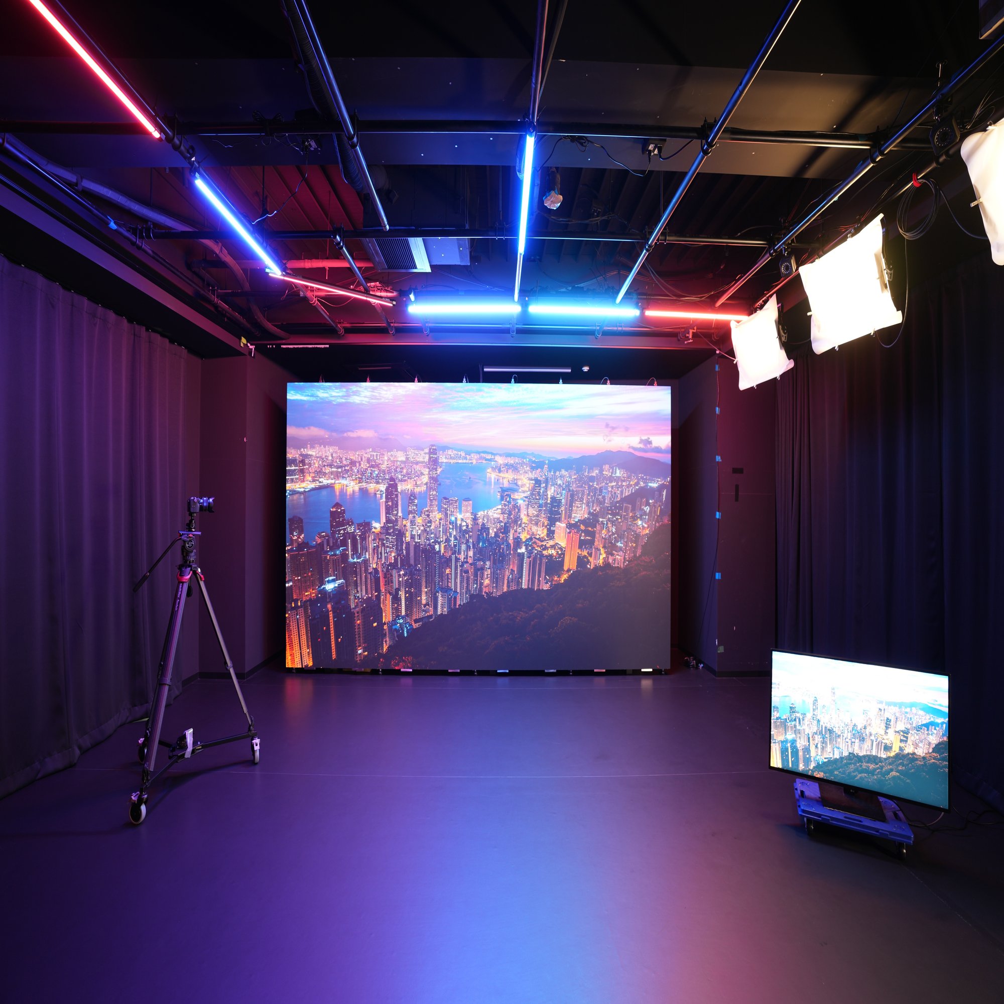 近年、映画や映像制作でよく使用される技術で、LEDディスプレイにリアルタイムで背景やエフェクトを表示し、それを撮影することで特殊効果を直接映像に組み込む方法です。主な手法としてUnreal Engine等のゲームエンジンを活用し撮影の段階でLEDなどでエフェクトを表示しながら撮影することで、従来ではコストがかかったポストプロダクションを大幅に簡略化できます。