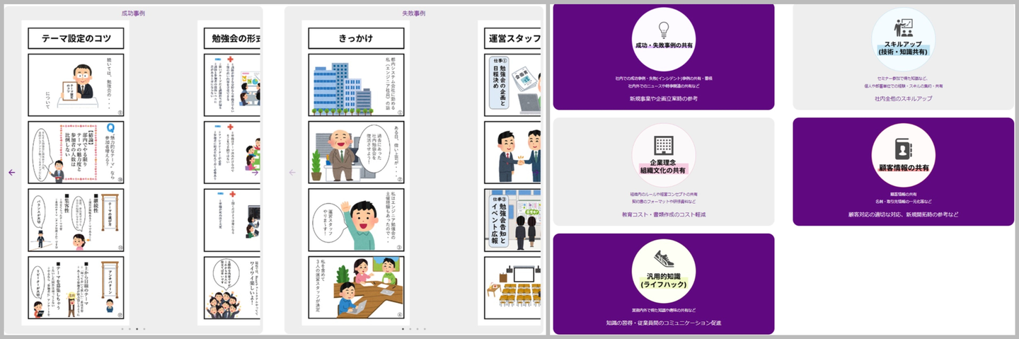 ナレッジにはいくつか種類があり、それぞれのナレッジに適したツール活用や共有方法などが存在しているようです。そして何より「きっと○○だろう」というお互いの暗黙知を形式知にして内容共有・理解していく姿勢が一番重要だそうです◎
