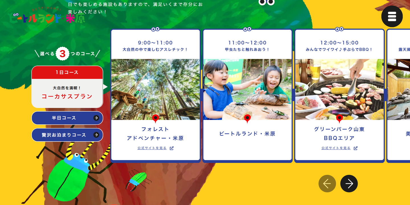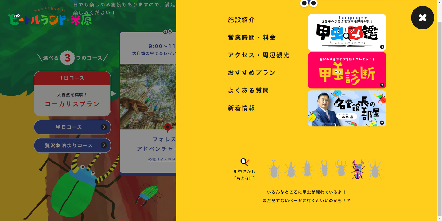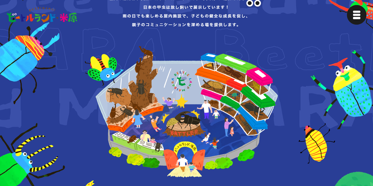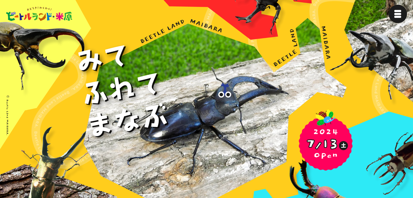 今回ご紹介するのは、カブトムシやクワガタとふれ合える施設「ビートルランド」の公式サイトです。