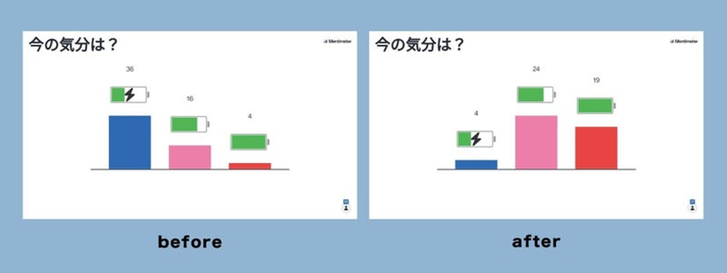 さて、前回に引き続き、今回も全体会議の前後にカケハシメンバーの充電レベルを計測しました。その結果がこちら……!
