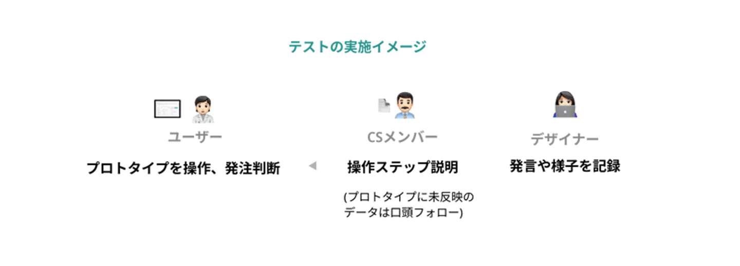 今回は、発注判断に必要な情報が揃っているかを明らかにすることが主な目的であったため、CSメンバーはテストに介入する形で、ユーザーは説明を受けて操作を進めていきました。
