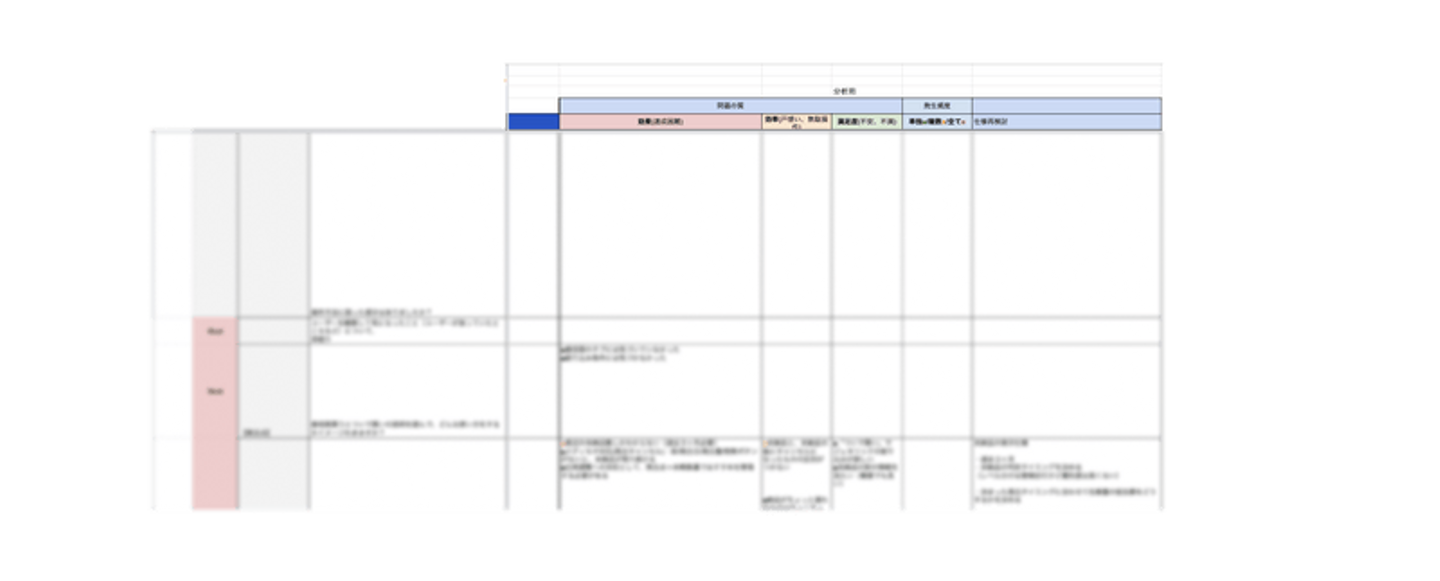一通りテストを終えて、それぞれが参加したテストの結果を一箇所にまとめ、数回の分析の場を設けました。内容は、操作や判断のための問題となった部分について記録されたものを、下記の問題の質で分類。