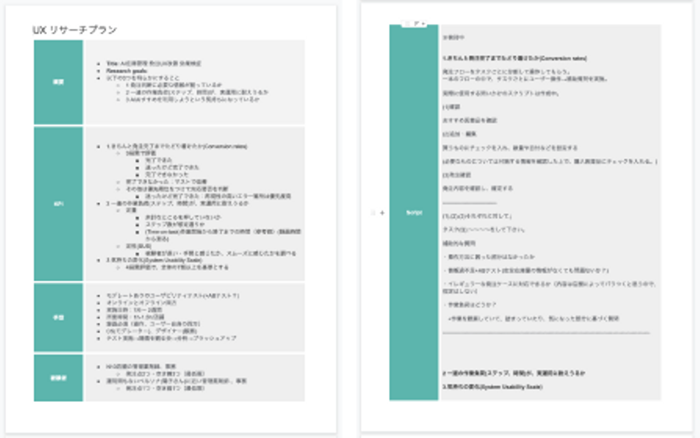 そして、これらを明らかにするため、前段で構築したユーザータイプ別の業務フローをスクリプト化。普段からユーザーとコミュニケーションを取っているCSメンバーが説明し、ユーザーが実際に発注判断を進めていけるかをシミュレーションしていく方法を取ることにしました。