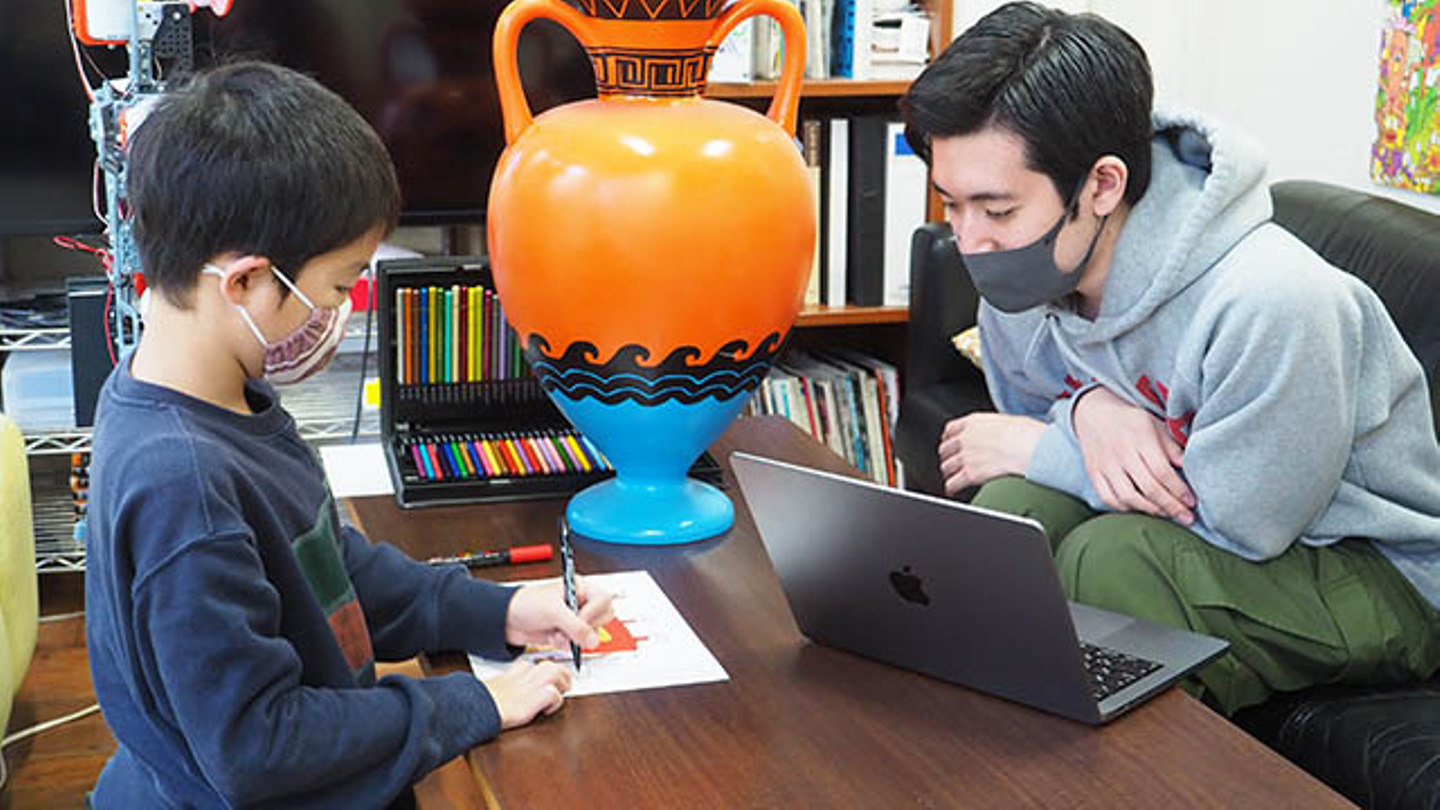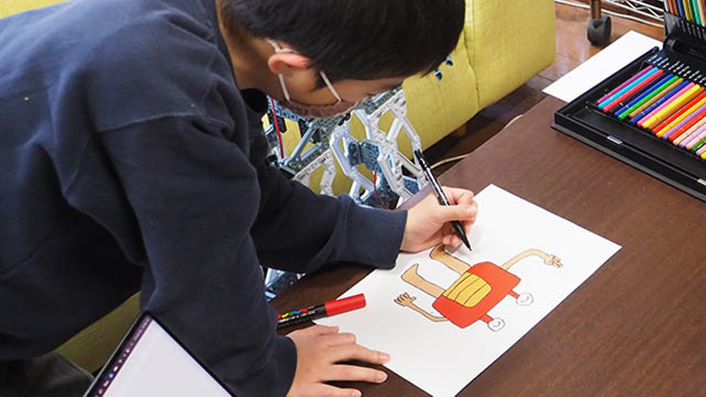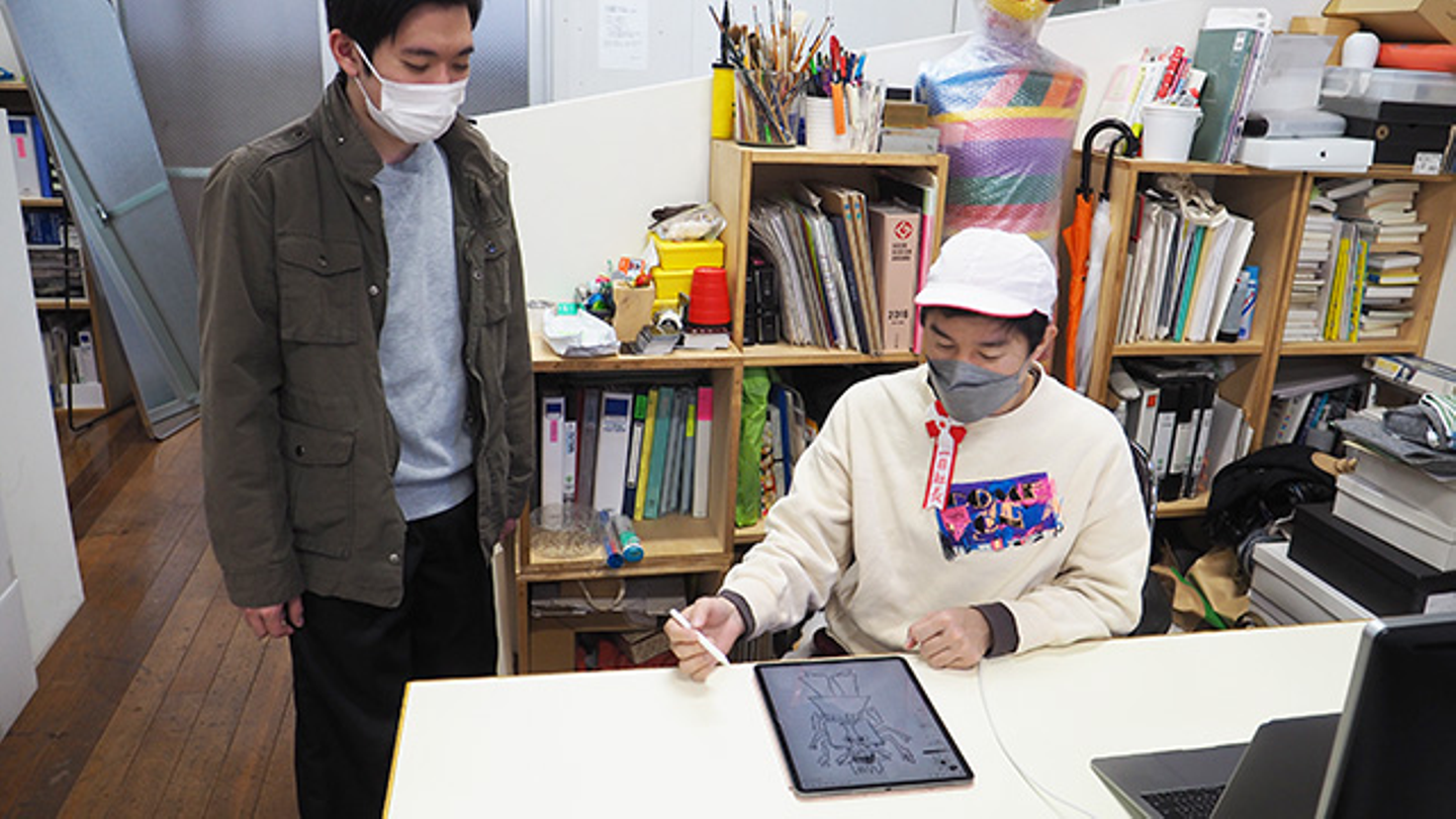 「今から、パソコンを使ってカニカピラのオリジナルキャラクターを作ってもらいます。社名がカニカピラなので、カニをモチーフにしたキャラでお願いします」