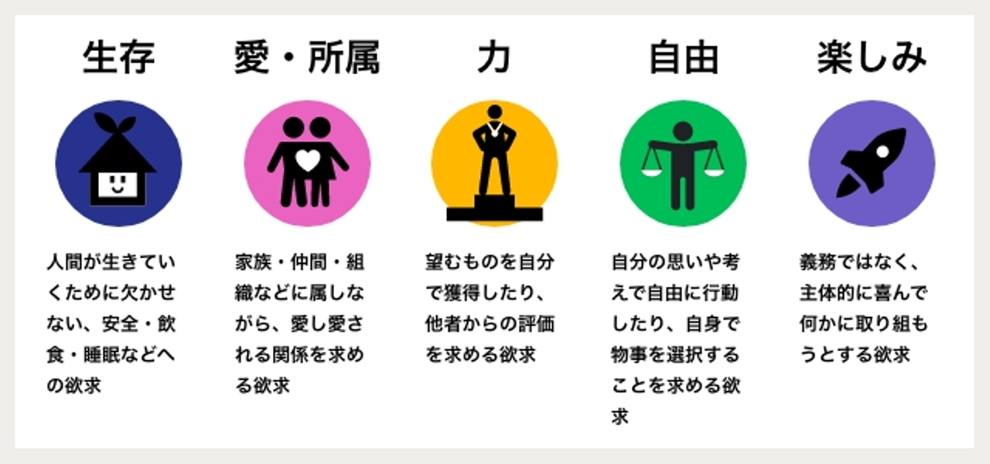 アンケート形式の質問に回答いただくと、5つのカテゴリーごとにお子さんが持っているやる気や欲求の強弱を可視化することができたり……