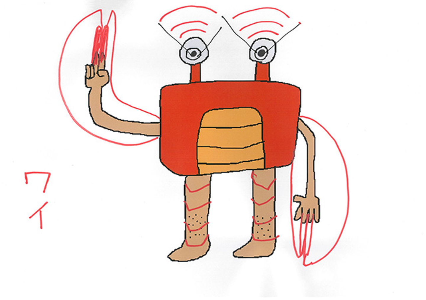 「なんじゃこりゃ〜!!!カニと人間を組み合わせてるから、バランスが悪い気しますね〜」