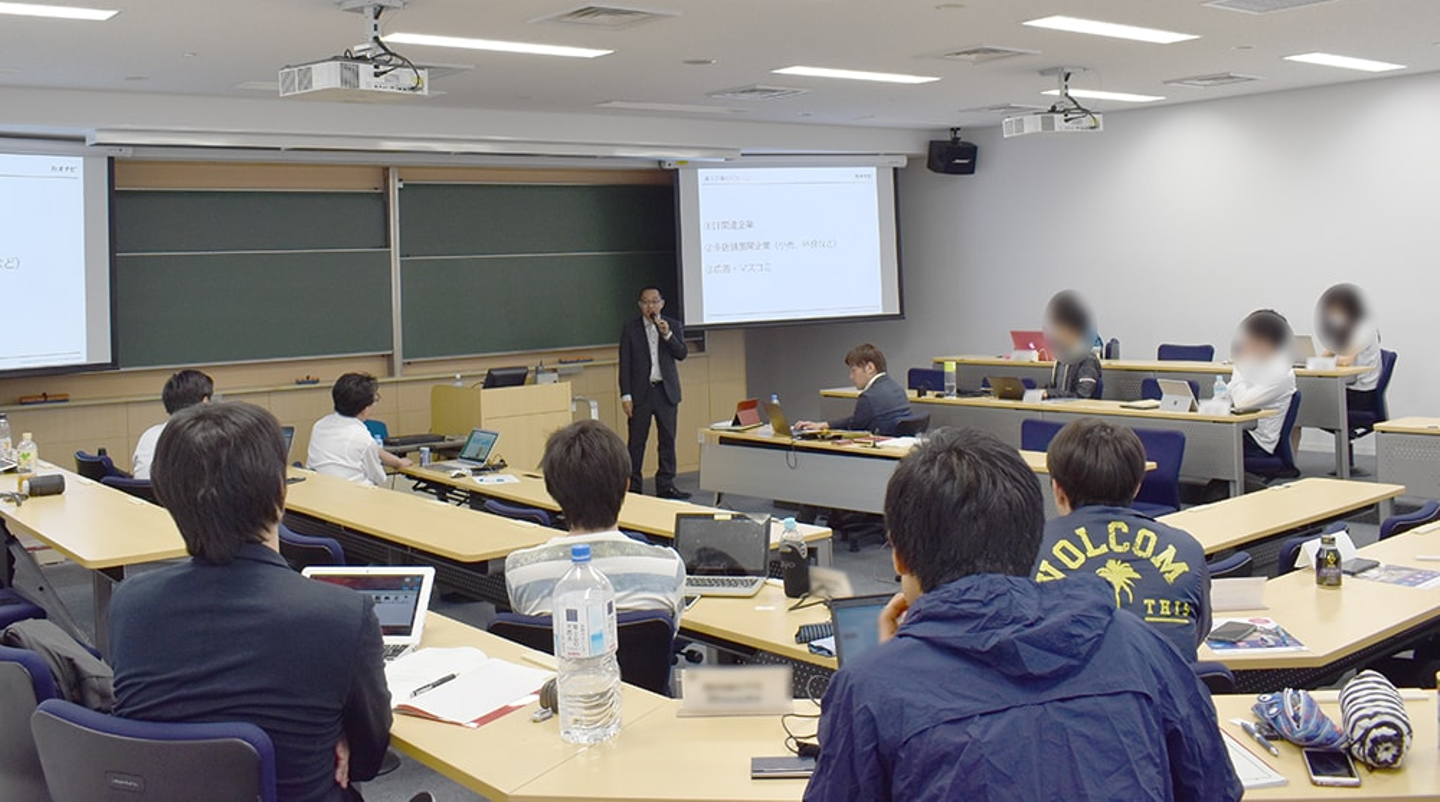 そして先日、慶應義塾大学大学院経営管理研究科の学生に講義する機会をいただき、カオナビHRテクノロジー総研 所長の内田と、当社のコーポレート本部長 藤田が登壇しましたので、その様子をご紹介します。