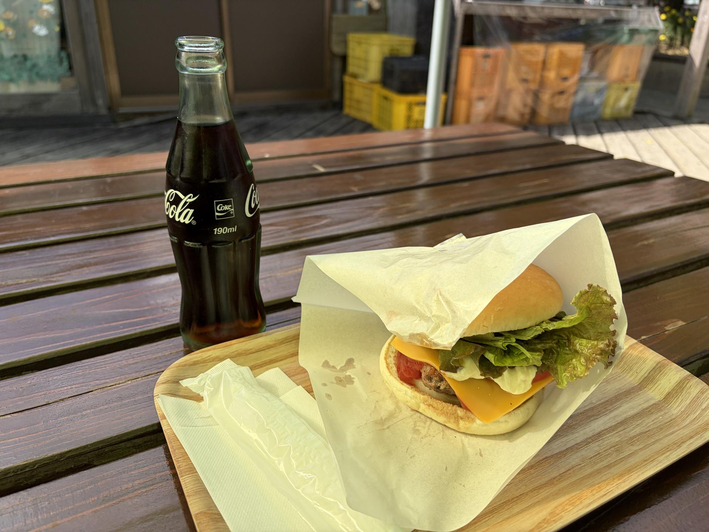 会場近くのカフェでハンバーガーと瓶コーラを堪能し、