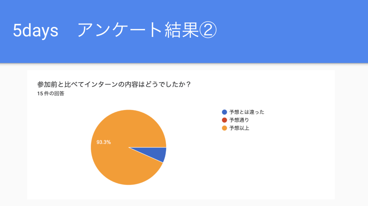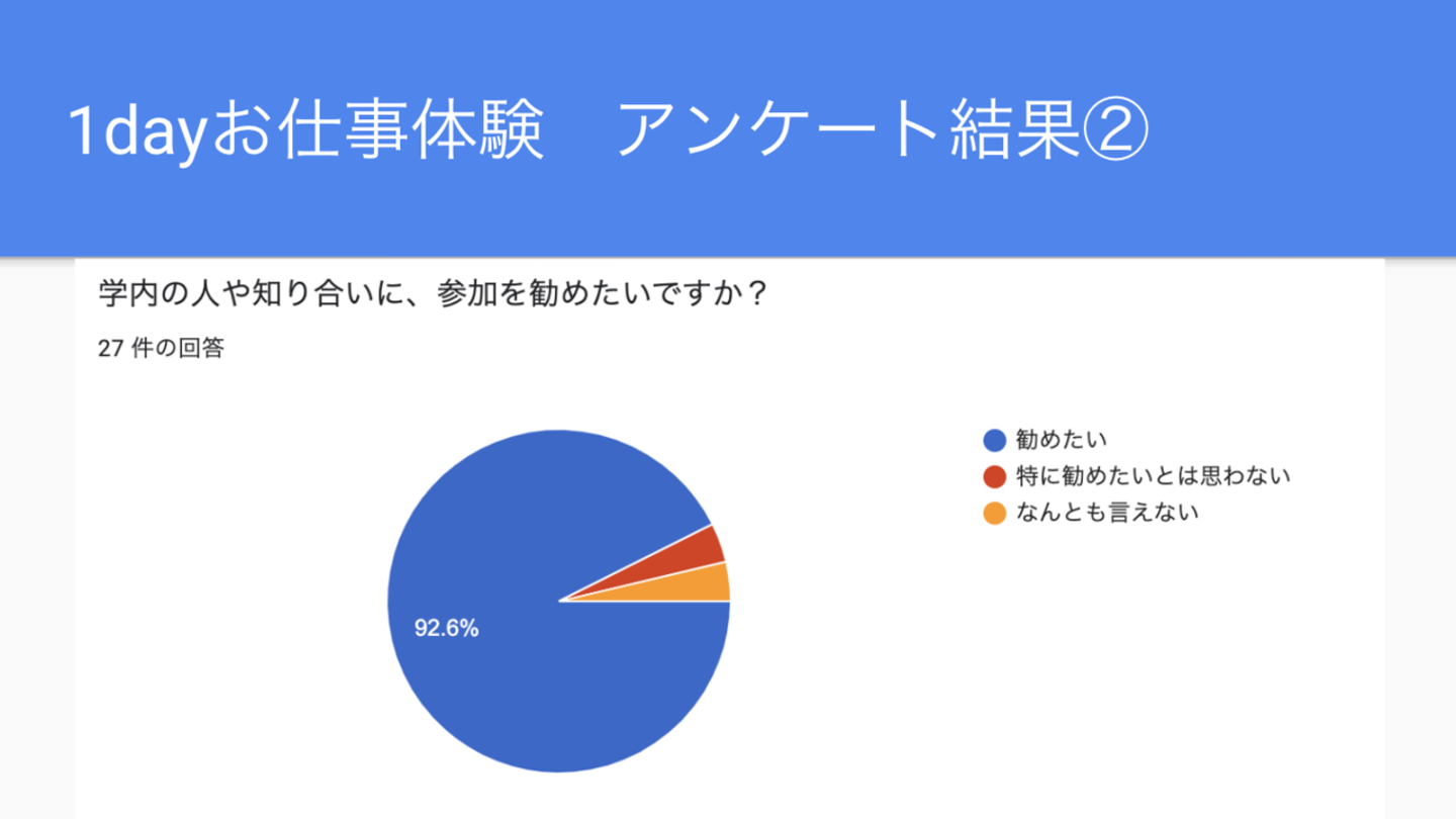 1Dayお仕事体験&5Daysインターンの最後に行ったアンケートですが、こちらが思っていた以上のフィードバックでしたね。