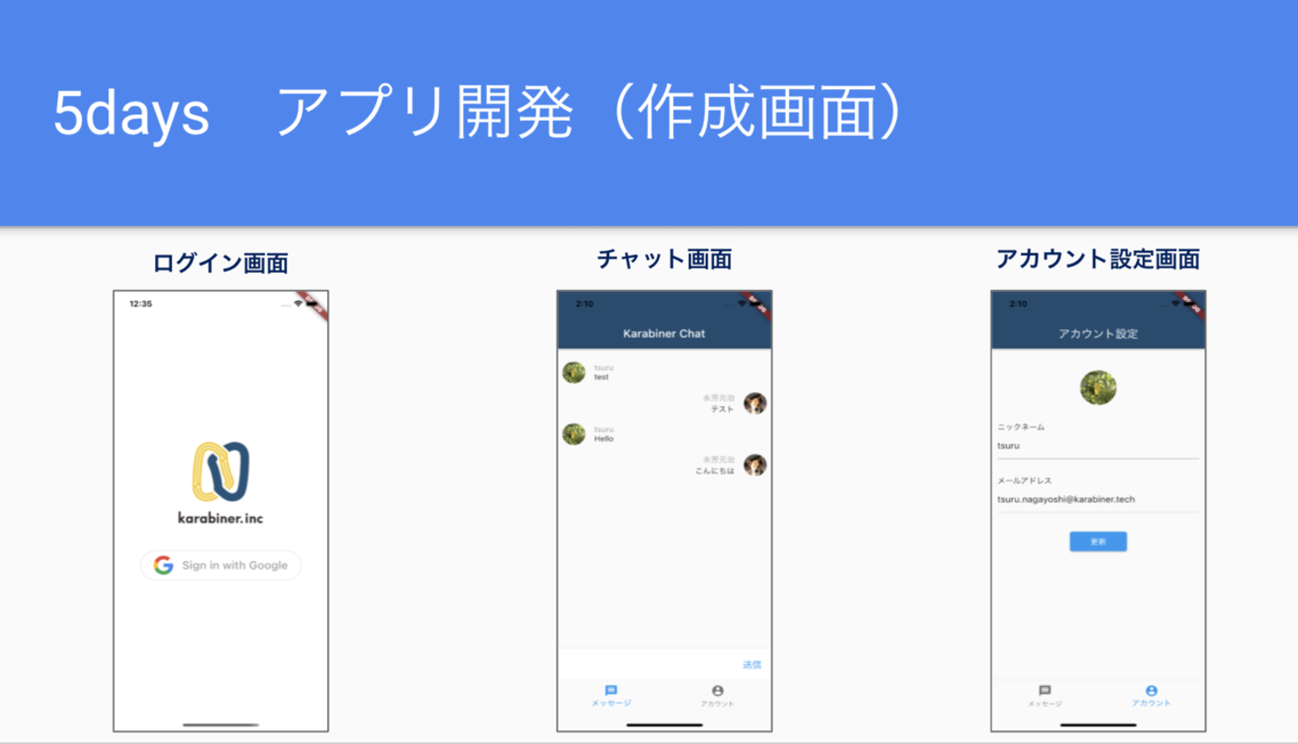 5日間なのもあり、今回は手を動かしてもらいアプリ開発、それに出来たアプリをベースに個人個人が好きなように改変できる形を取りました。