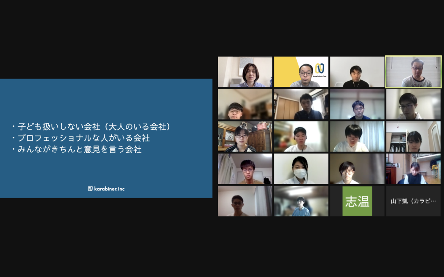 カラビナとしても初のインターンだったこともあり、色々と準備には時間もかかりましたが良きメンバー、良き参加者のお陰で無事たのしく終えることが出来ました。
