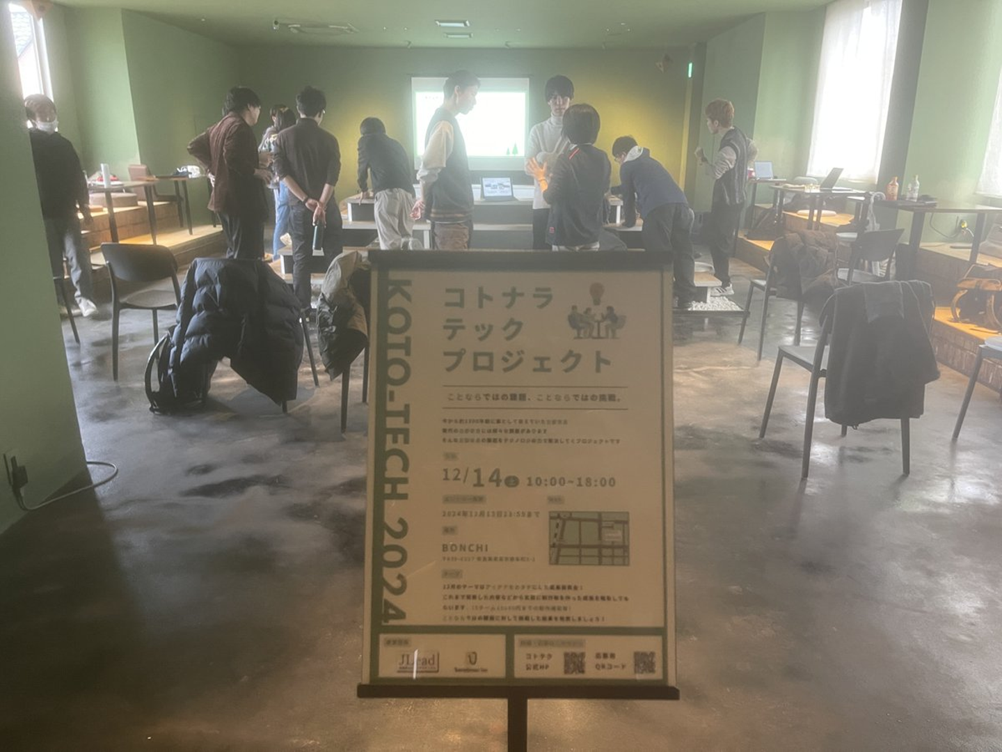 2日目は、奈良市になるコワーキングスペースbonchiさんにて、”コトナラテックプロジェクト”という、カラビナが共催しているハッカソンの発表会へ参加しました。