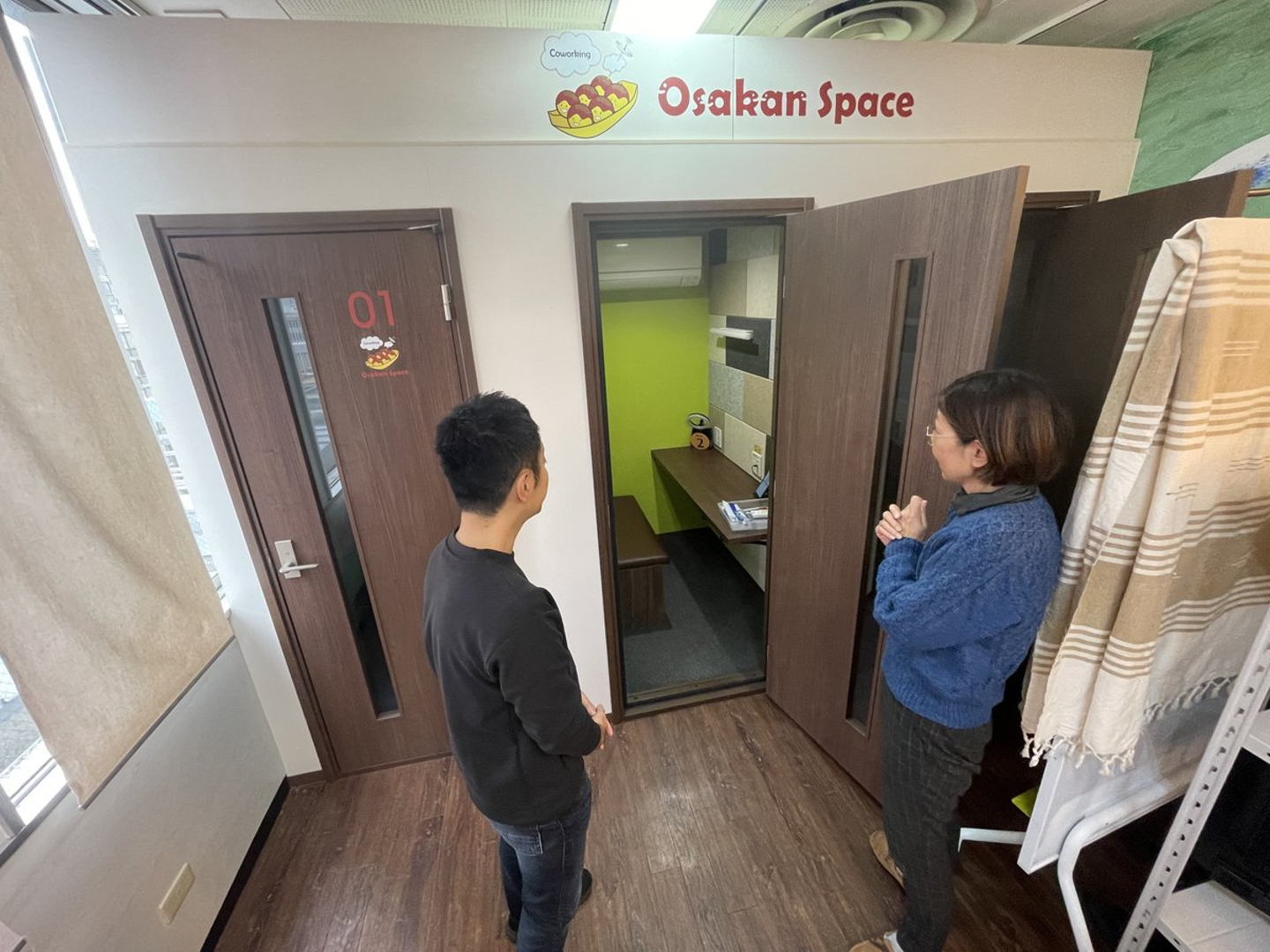 ロゴがたこ焼きのオオサカンスペースさん。地下鉄御堂筋線の本町駅からすぐで、ビルのワンフロアがコワーキングスペースになっていました。