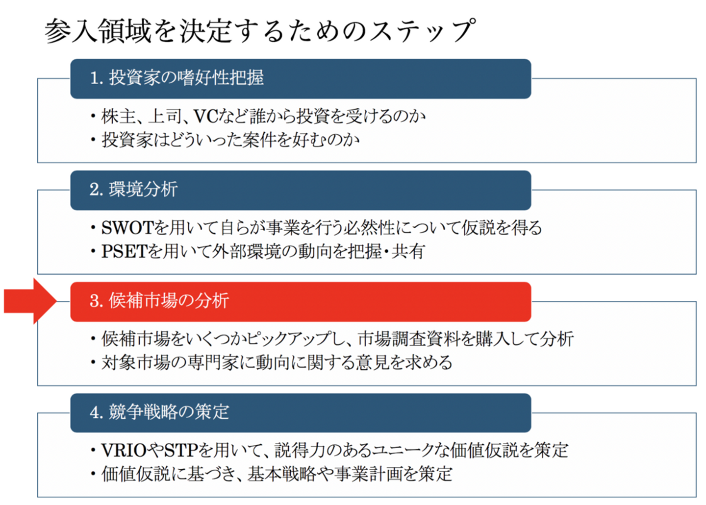 今回は、その流れを踏まえて「事業開発における市場調査実務」について説明します。