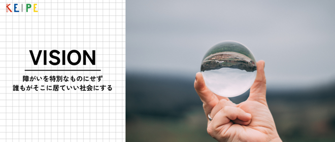 KEIPEは「障がいを特別なものにせず、誰もがそこに居ていい社会にする」をVisionに掲げています。