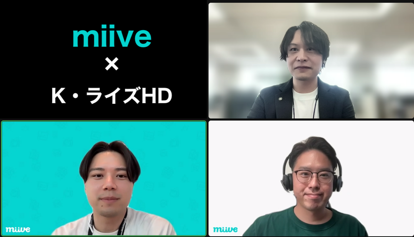 (株式会社miive:CEO栗田さん、セールスhikoさん/株式会社K・ライズホールディングス:今川、山田)
