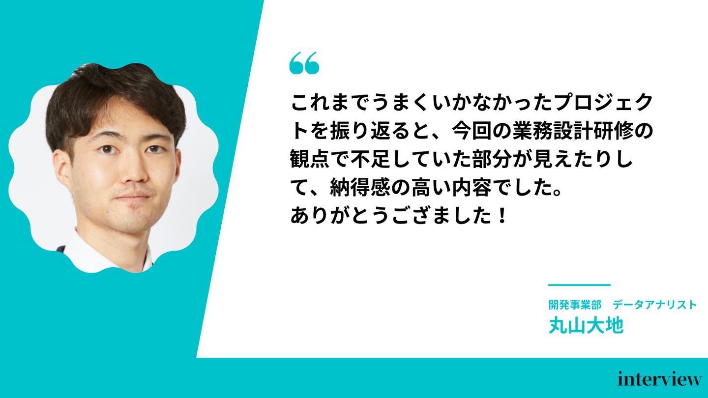 今後も業務設計研修で学んだことを参考に業務を進めていきたいと思います!