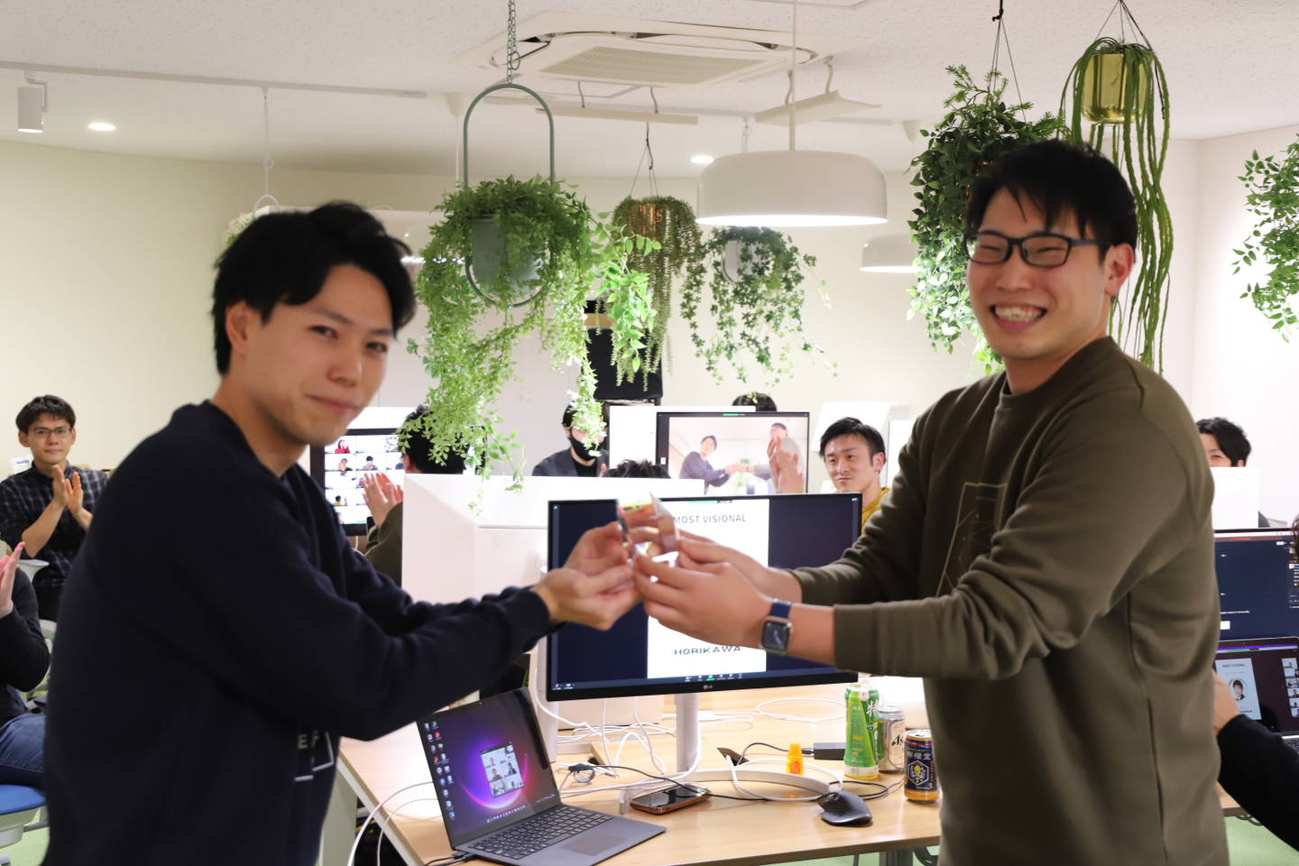 実際地方に住まれている方もいるので当日の忘年会は、オンラインで行いオフィスに来れる方はオフィスから忘年会に参加するような流れとなりました!