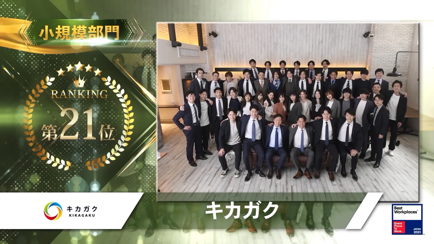 先日発表された、Great Place To Work®Institute Japan が実施した2023年版 日本における「働きがいのある会社」ランキングですが、キカガクは小規模部門(従業員25~99名)にて 21 位を受賞しました! 初めてのエントリーでこの順位は快挙です! 来年は日本一を目指し、更に社員ひとりひとりの「働きがい」を追求してまいります。