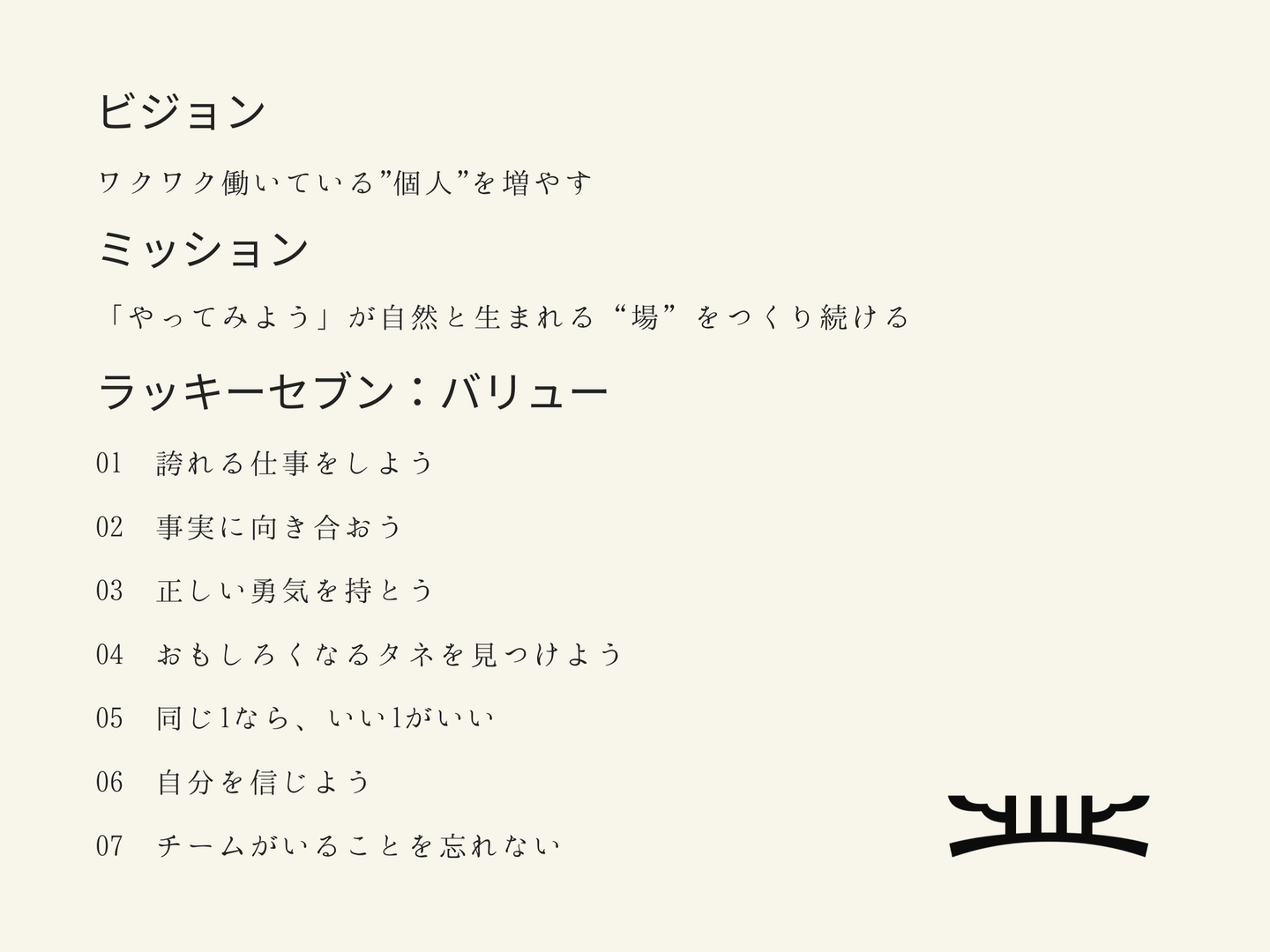 先月、木下商会はミッション・ビジョン・ラッキーセブン(価値観)をアップデートしました。