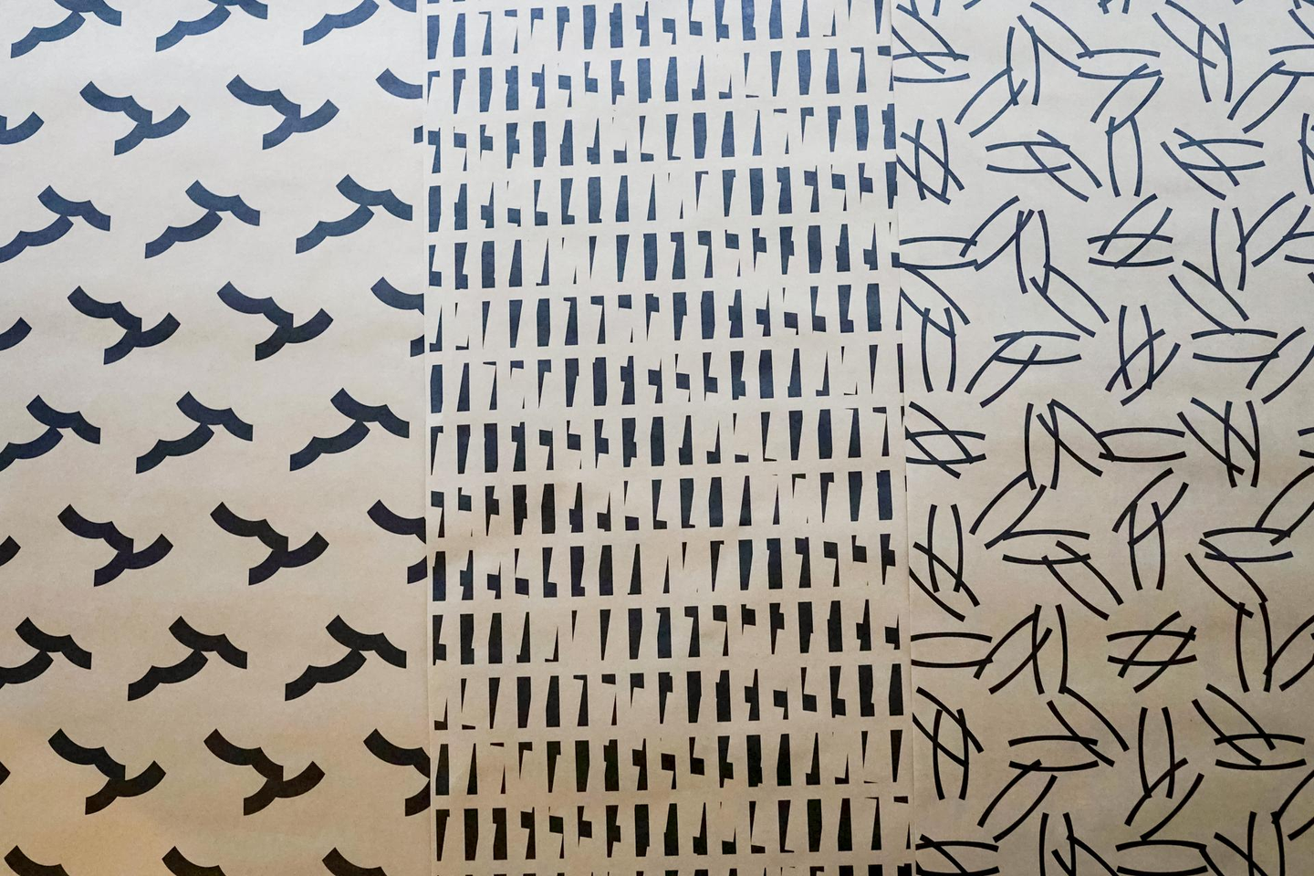 こちらも、きのもとマークの展開から3種類のパターンをつくっていただきました。「これでファブリックをつくるのもアリじゃない?」と盛り上がった、かっこいいデザインです。