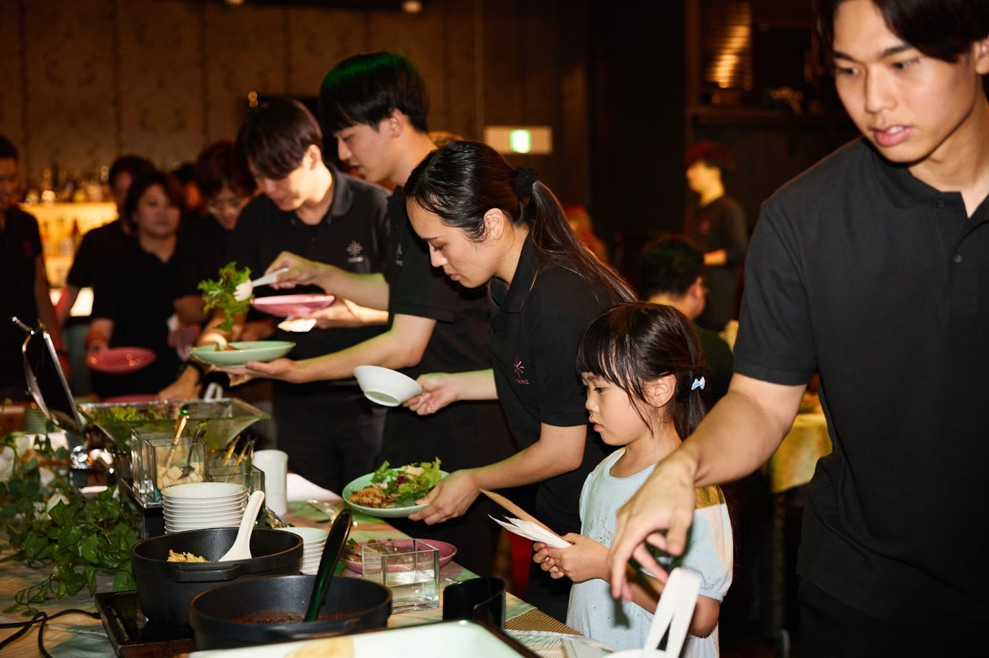 第二部は、美味しい食事と共に楽しむ懇親会です。実行委員がこだわったのは、部署や役職の垣根を越えたコミュニケーションの活性化。普段関わりの少ない社員同士が交流できるよう、席順は事前に緻密に計算されていました。