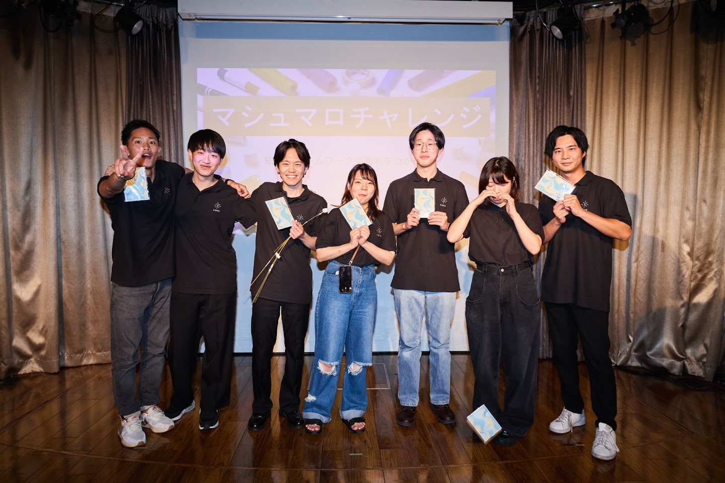 特に盛り上がったのが、チームビルディングゲーム「マシュマロチャレンジ」! パスタやテープを使い、てっぺんにマシュマロを乗せたタワーの高さを競うこのゲーム。チームでの戦略と協力が試される中、「もっとこうしよう!」「こっちを支えて!」と自然に声が飛び交い、会場の熱気は最高潮に。