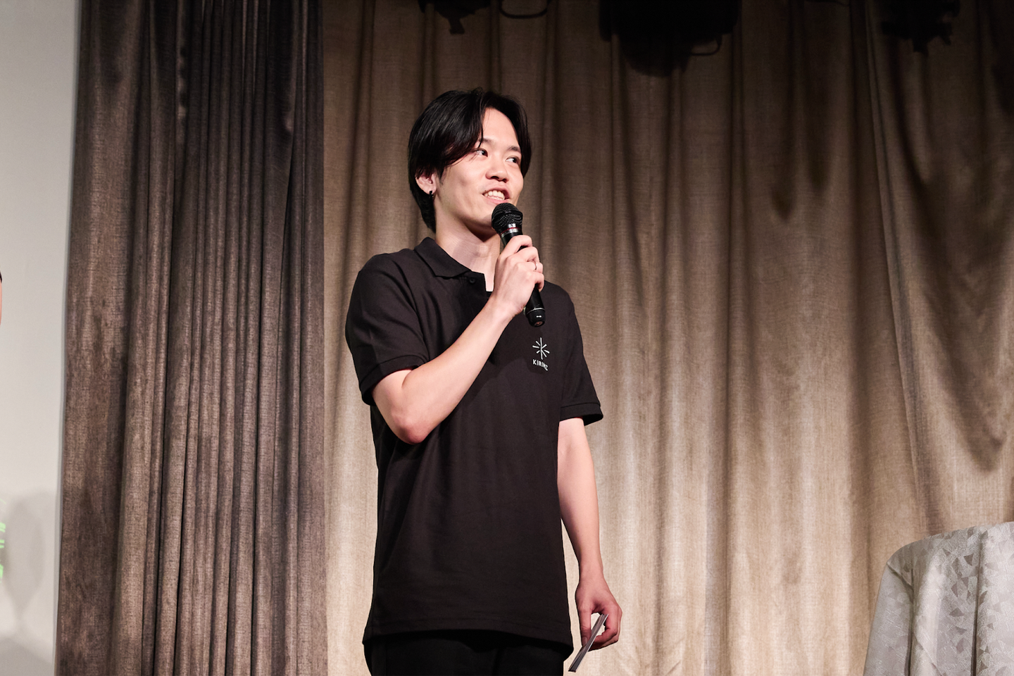 定刻通り17時にスタートした第一部。まず上映されたのは、この日のために制作されたオープニングムービー「KIRINZが提供する価値とは?」。ムービーは、KIRINZの根幹にある「人類の可能性を引き出す」というミッションを改めて社員に問いかけ、ライバーマネージャーとライバーそれぞれの視点から、KIRINZが創出する「挑戦できる環境」の真髄を映し出しました。