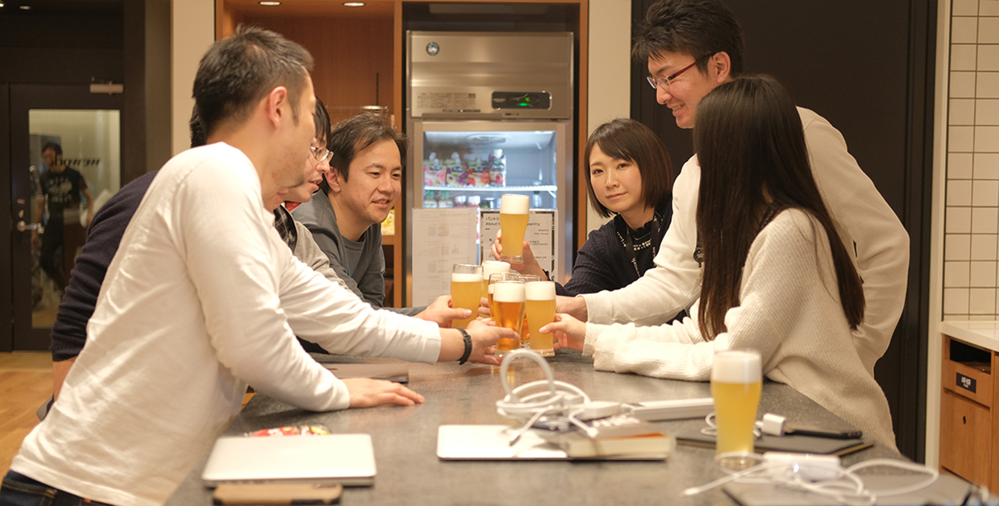 ストイックな2時間の講座のあとは、WeWorkの共有エリアで乾杯しました!