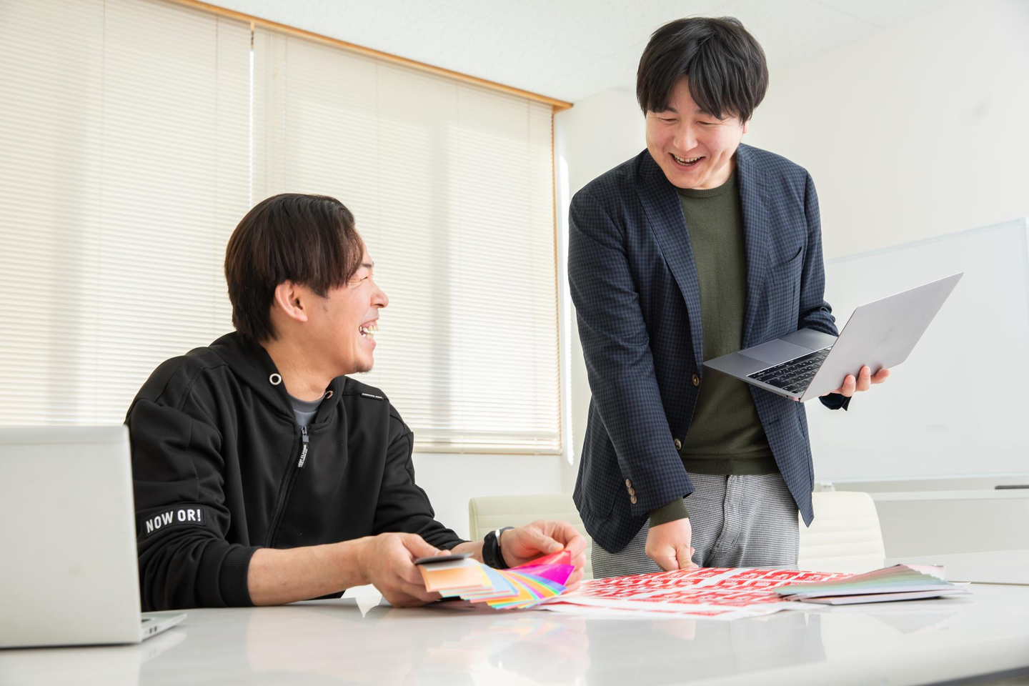 営業活動のどんなことに活きてくるのですか?例えば営業で重要なのはお客様とのコミュニケーションだと思うのですが、やっぱり引き出しを多く持っていることが大事なだと考えています。そのためお客様に提案するときも現場の印刷の仕組みなどを理解した上で、お話することで理解してもらえますし、すぐに製品がどのような形になるか説明できるので、いちいち社内に持ち帰って後日返答するということもありません。具体的な話がすぐにできるのでお客様からも信頼してもらえますし、コスト削減や品質担保などお客様が求めるニーズを叶えるためのベストな方法を何通りも考えられるのも、このDTPでの経験があったからだと思っています。デザイナーなどクリエイティブの経験があったうえで営業にキャリアチェンジすることはこの業界はとくにいいと思います。