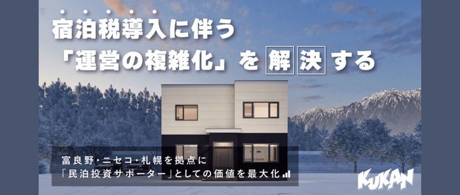 札幌・ニセコ・富良野を拠点に民泊不動産事業、デジタルマーケティング支援事業を営むKukan Inc.の山本 健太郎です。